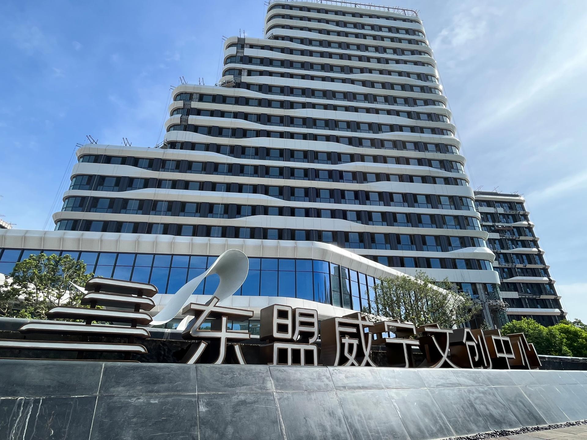 東盟威寧文創中心設計造型保持五象新區規劃風貌,建筑外立面使用橫線條元素,與廣西文化藝術中心相呼應,成為積聚商業、辦公、文化體驗為一體的城市新興多元綜合體。項目現正在開展幕墻工程玻璃和鋁板安裝、公共部位裝修、機電安裝、景觀園林等施工,目前已完成總體形象進度的90%。
