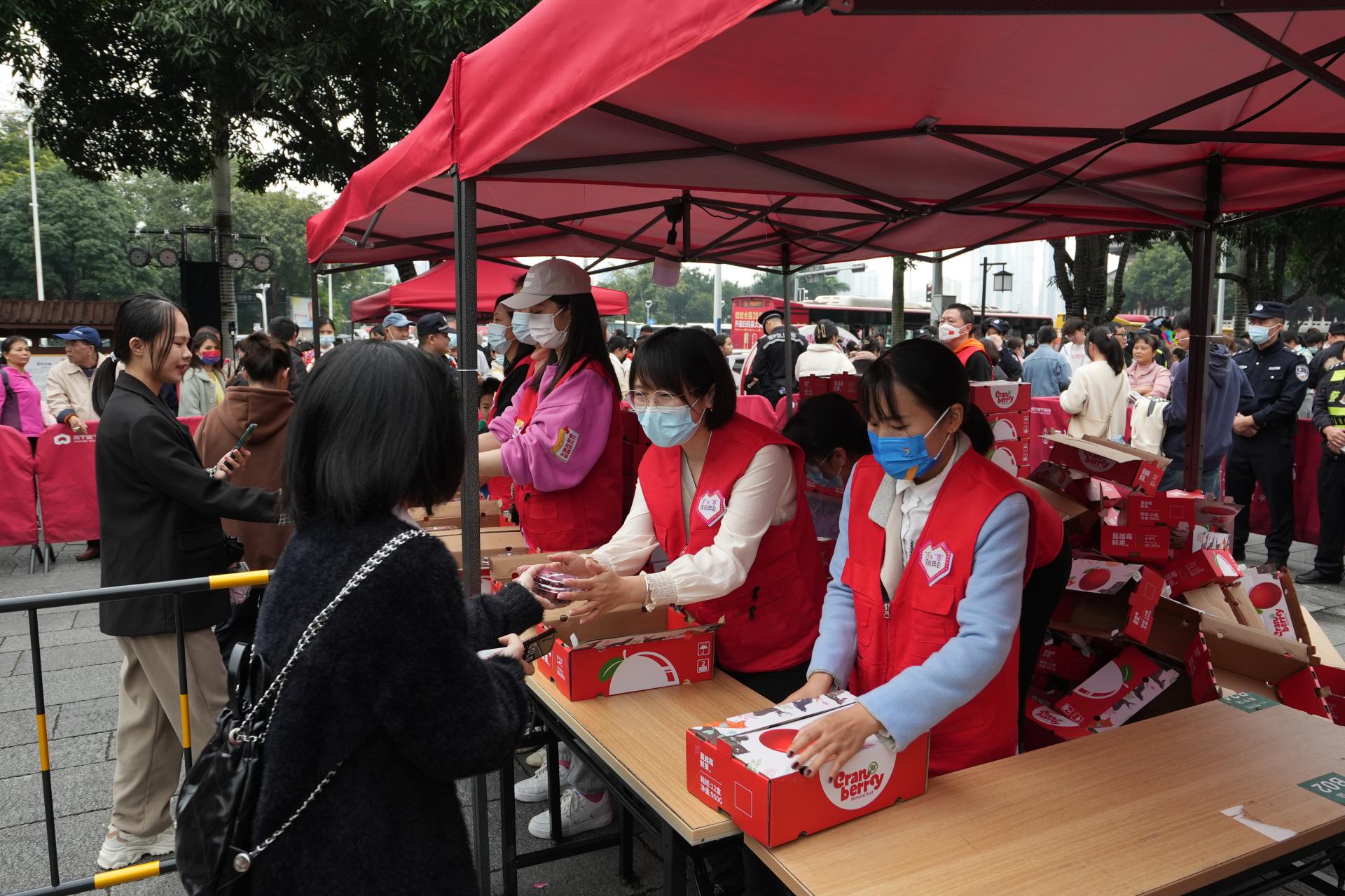 志愿者開展蔓越莓發放工作