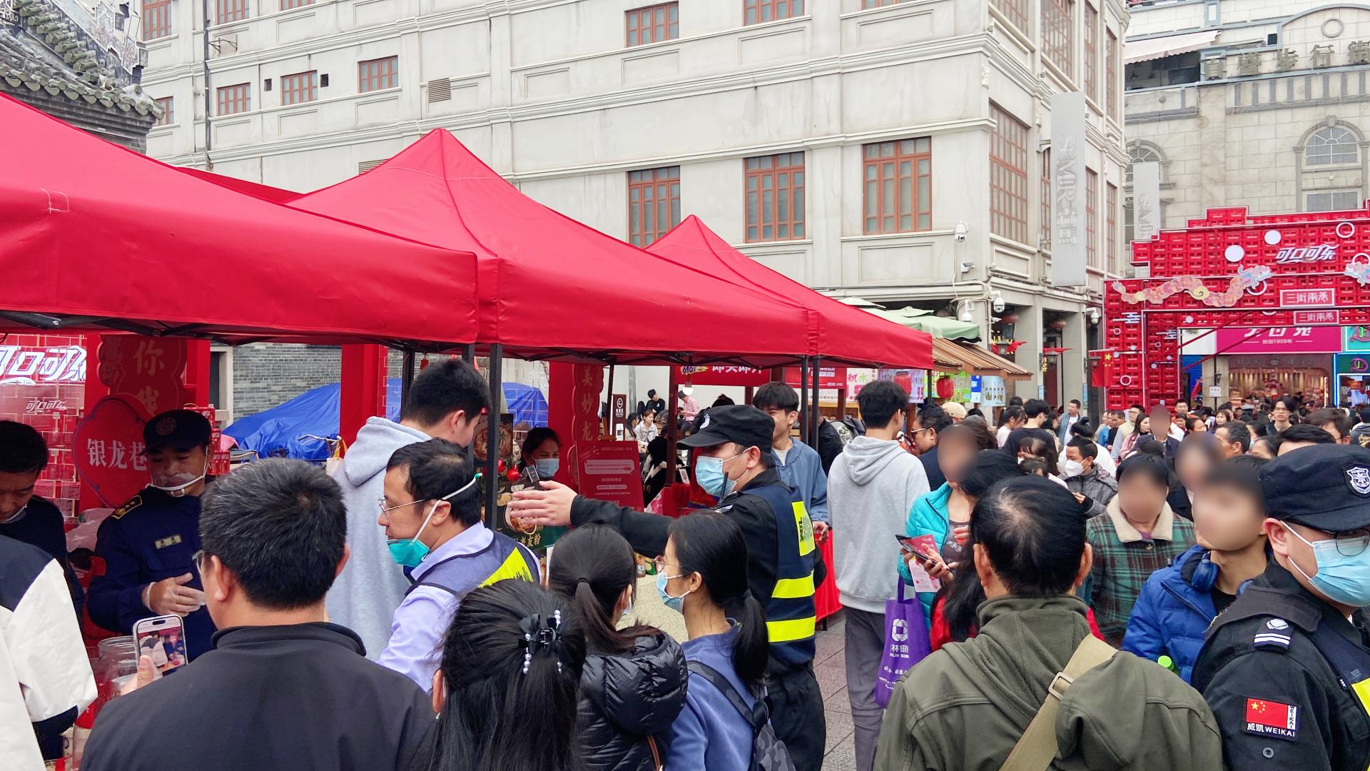 雨水澆不滅南寧市民的熱情。在1月11日—1月14日的四天派發活動時間里,大批市民抵達邕州古城·三街兩巷,高峰期現場客流量高達近1.5萬人次,車流量近3千輛次,為了確保邕州古城·三街兩巷發放現場安全到位、氛圍布置到位,威邕城市運營集團組織人手通宵完成活動物料進場及布置工作;面對強降雨天氣,公司迅速作出反應,組織志愿者為市民游客提供“愛心雨衣”,第一時間熬煮暖心姜茶,通過小小善舉,將暖意傳遞到每個人心底,受到市民群眾一致夸贊;在派發活動高峰期,針對可預見的客流激增態勢,公司組織精干人防覆蓋重要點位,增強巡防頻次、密度,嚴防擁擠、推搡、踩踏、走散等意外事件發生,確保發放現場安全有序進行。此外,公司還為第一次見到蔓越莓的南寧市民準備了現場試吃點,讓市民群眾了解了蔓越莓多樣化的食用方法,并解鎖蔓越莓酸嘢的南寧做法。