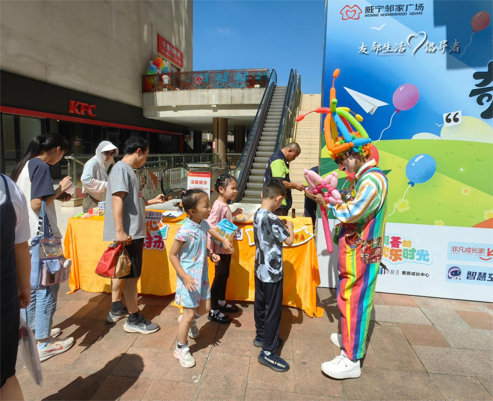 活動當天,威寧·金菊鄰家廣場被裝點得五彩斑斕,充滿童趣。小丑叔叔身著色彩鮮艷的服裝,為孩子們扎制各式各樣的氣球,孩子們歡呼雀躍。