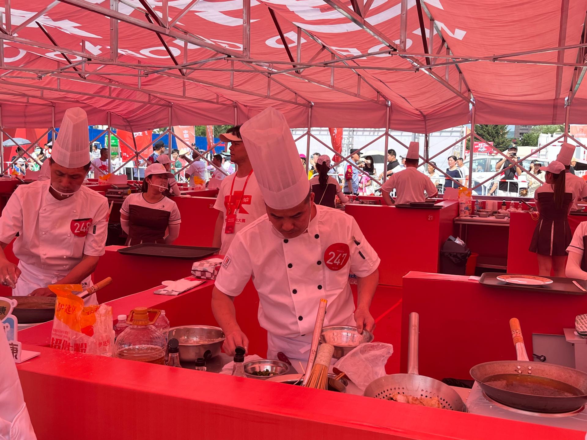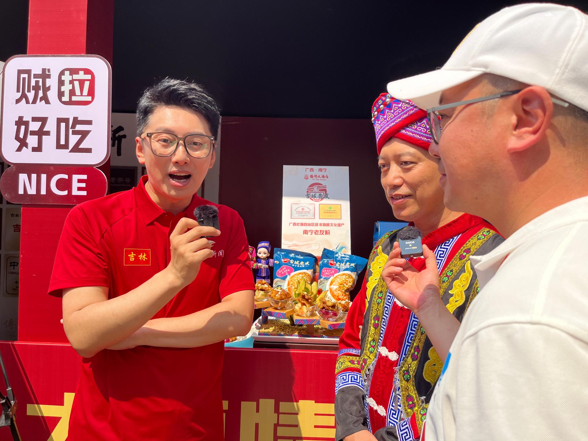 除參加“世界鍋包肉大賽”的廚藝比拼外,銀河大酒店還將自營新品“南寧老友粉”和代表銀河老味道的邕城經典傳統點心帶至大賽現場推廣。團隊成員穿起壯鄉特色的服飾,在現場設立南寧“小砂糖橘”老友商品展位,煮制南寧老友粉,分發邕城傳統點心,邀請吉林市民品嘗。在展位現場,酸辣濃香的“古城老友粉”獲吉林市民大加贊賞,紛紛現場排隊“嗦粉”,而身穿壯鄉服飾的“大砂糖橘”更是在比賽現場成為媒體采訪和市民的合影對象,團隊現場組織品嘗、銷售南寧老友粉人氣火爆,現場游客人數、直播觀看人數、短視頻抖音號播放數合計超300萬人次。