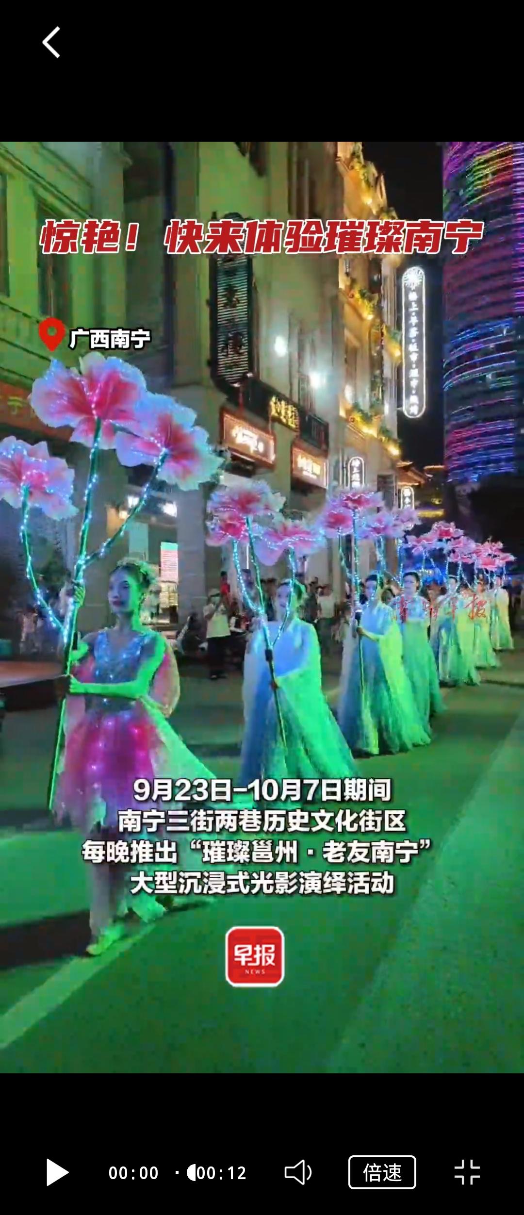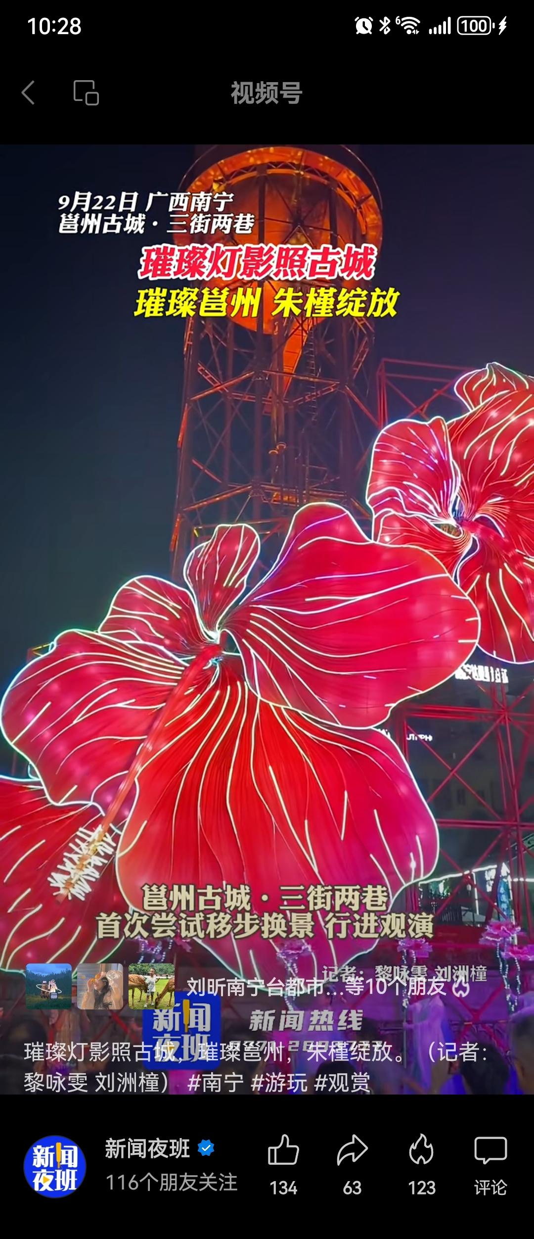 不僅如此,活動在同城媒體和來自全國游客觀眾上傳的各類現場視頻中,成為了南寧市民及游客熱議的焦點,“三街兩巷燈光秀”“國慶心動打卡地”“三街兩巷美麗夜景太迷人”等熱搜詞條和新華街水塔下巨型朱槿花、朱槿花仙子翩翩起舞巡游的畫面也持續刷屏,充分展現了活動在社交媒體上的高頻討論度。抖音達人“王同學”“超模CP”、自媒體賬號“識南寧”等紛紛上傳游玩打卡視頻,眾多素人博主也紛紛在抖音、小紅書等平臺上傳拍照打卡、領票攻略,通過一系列引人入勝的短視頻、圖文等形式分享自己的光影體驗之旅,進一步擴大了活動的影響力。截止活動結束,社交平臺上的相關話題討論量超過百萬次,視頻觀看量更是突破億級,讓“璀璨邕州·老友南寧”成為了國慶期間網絡上的熱門話題。