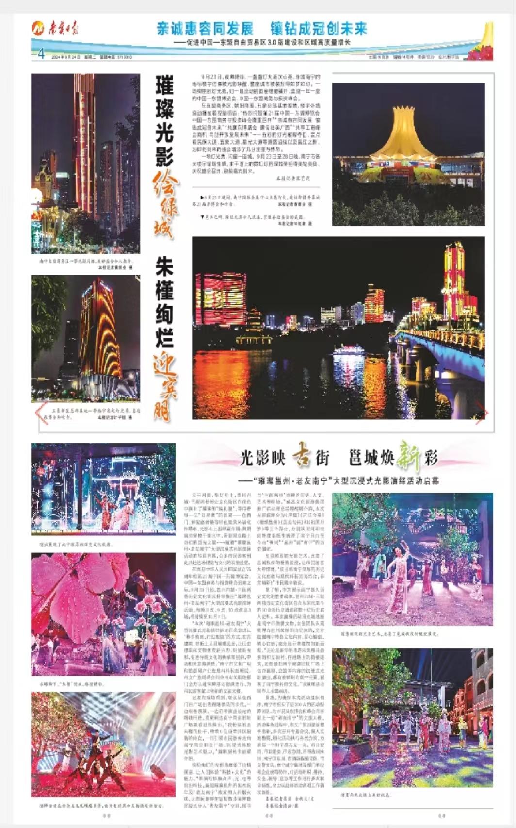 活動期間,廣西日報、南國早報、廣西廣播電視臺、南寧日報、南寧晚報、南寧廣播電視臺等12家媒體兩次派出記者,深入邕州古城·三街兩巷,用鏡頭捕捉這場光影交織的文化盛宴的精彩瞬間。他們不僅記錄了光影演繹的絕美畫面,還深入探訪了活動背后的故事,從活動籌備的辛勤汗水到技術創新的匠心獨運,再到觀眾們的熱烈反響,全方位、多角度地展現了活動的獨特魅力與深遠意義。
