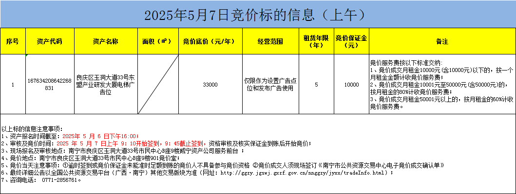 2025年5月7日競價標(biāo)的信息(現(xiàn)場競價)